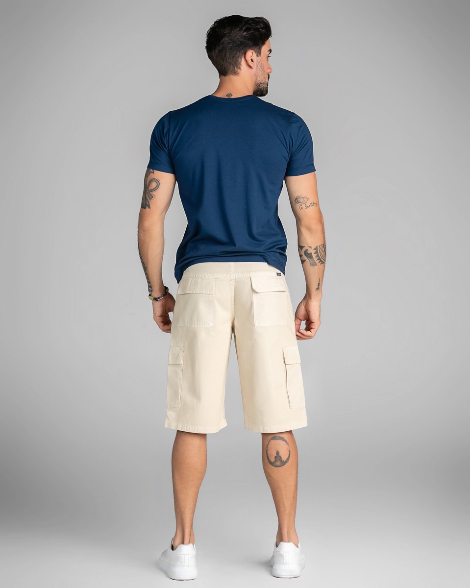 O design cargo traz bolsos laterais funcionais, que garantem praticidade para carregar carteira, celular, chaves e itens essenciais sem perder o estilo. Na cor Off White, a peça se destaca pela versatilidade, combinando facilmente com camisetas básicas, polos ou camisas para um visual moderno, urbano e cheio de personalidade.