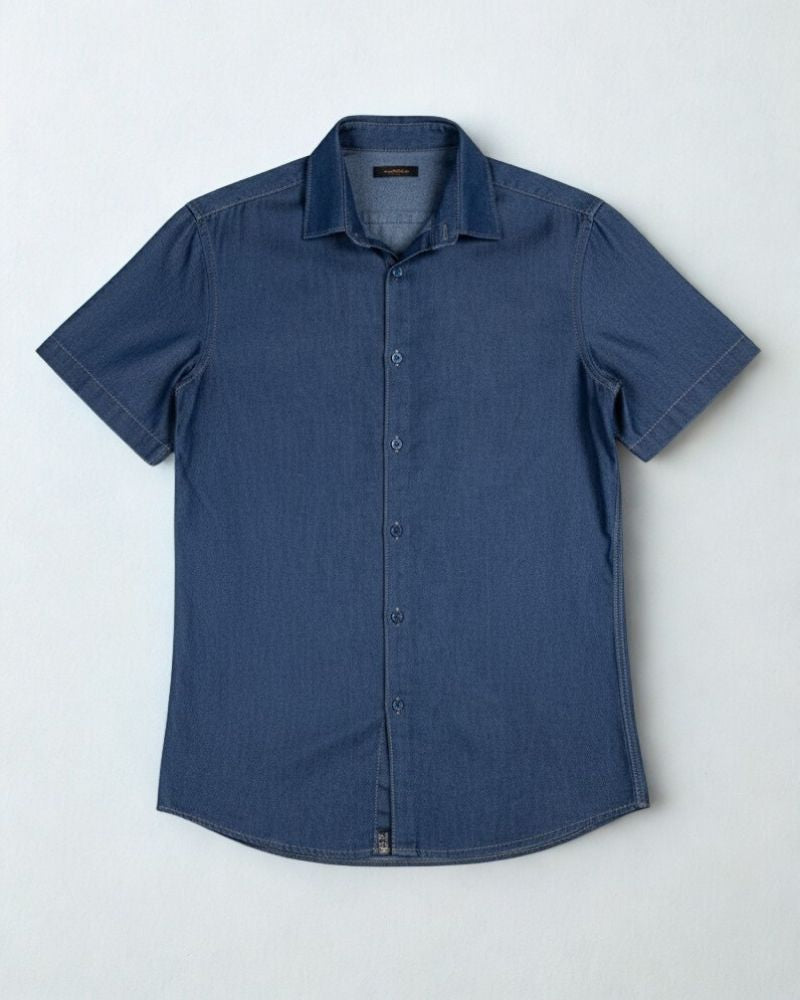 Camisa Jeans Masculina Slim Manga Curta – Jeans Médio